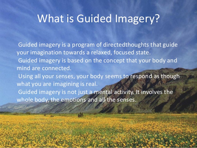 3. Guided imagery. For this technique, you conjure up soothing scenes, places, or experiences in your mind to help you relax and focus. You can find free apps and online recordings of calming scenes—just make sure to choose imagery you find soothing and that has personal significance. Guided imagery may help you reinforce a positive vision of yourself, but it can be difficult for those who have intrusive thoughts or find it hard to conjure up mental images.